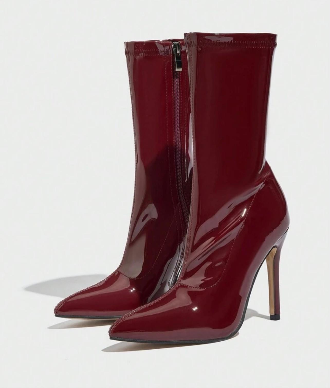 Light comfortable luxury boots Elevate your footwear collection with these sophisticated faux leather boots in a rich wine red hue....