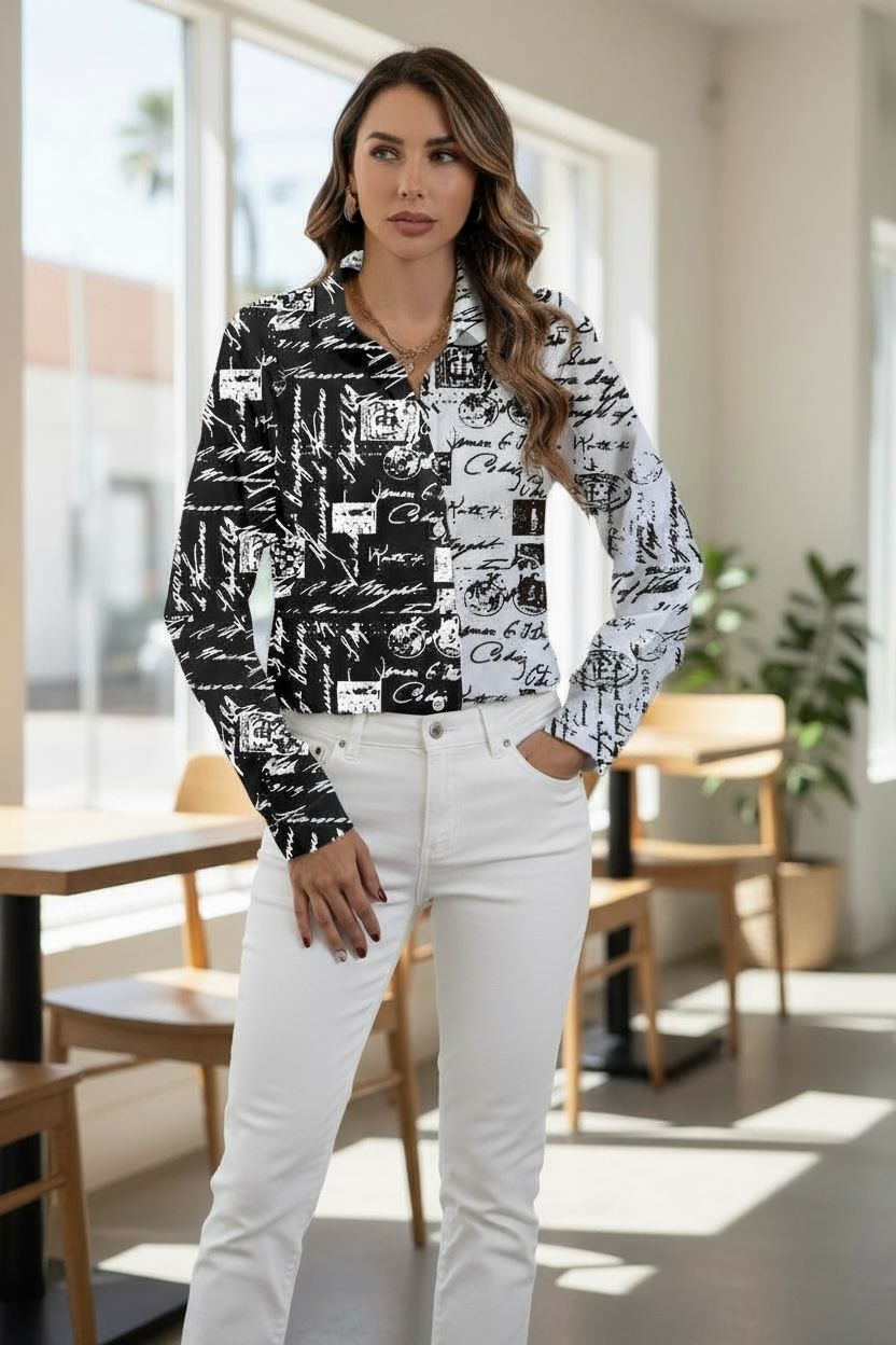 Elevate your wardrobe with this sophisticated black and white blouse, designed for versatile styling and timeless appeal. The long sleeves...
