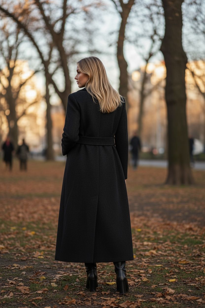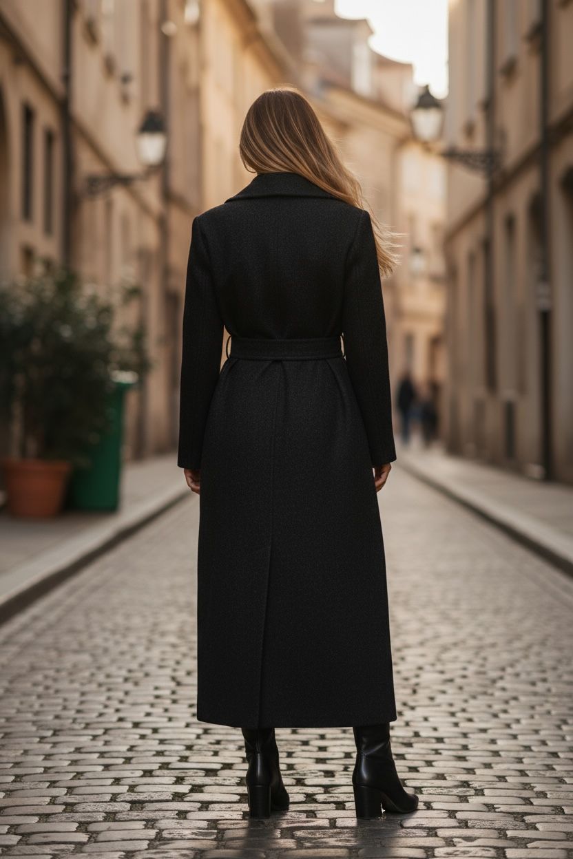 The Black Trench Coat by Luxe Muet combines timeless tailoring with modern functionality. Crafted from wind-resistant fabric, this versatile layer...
