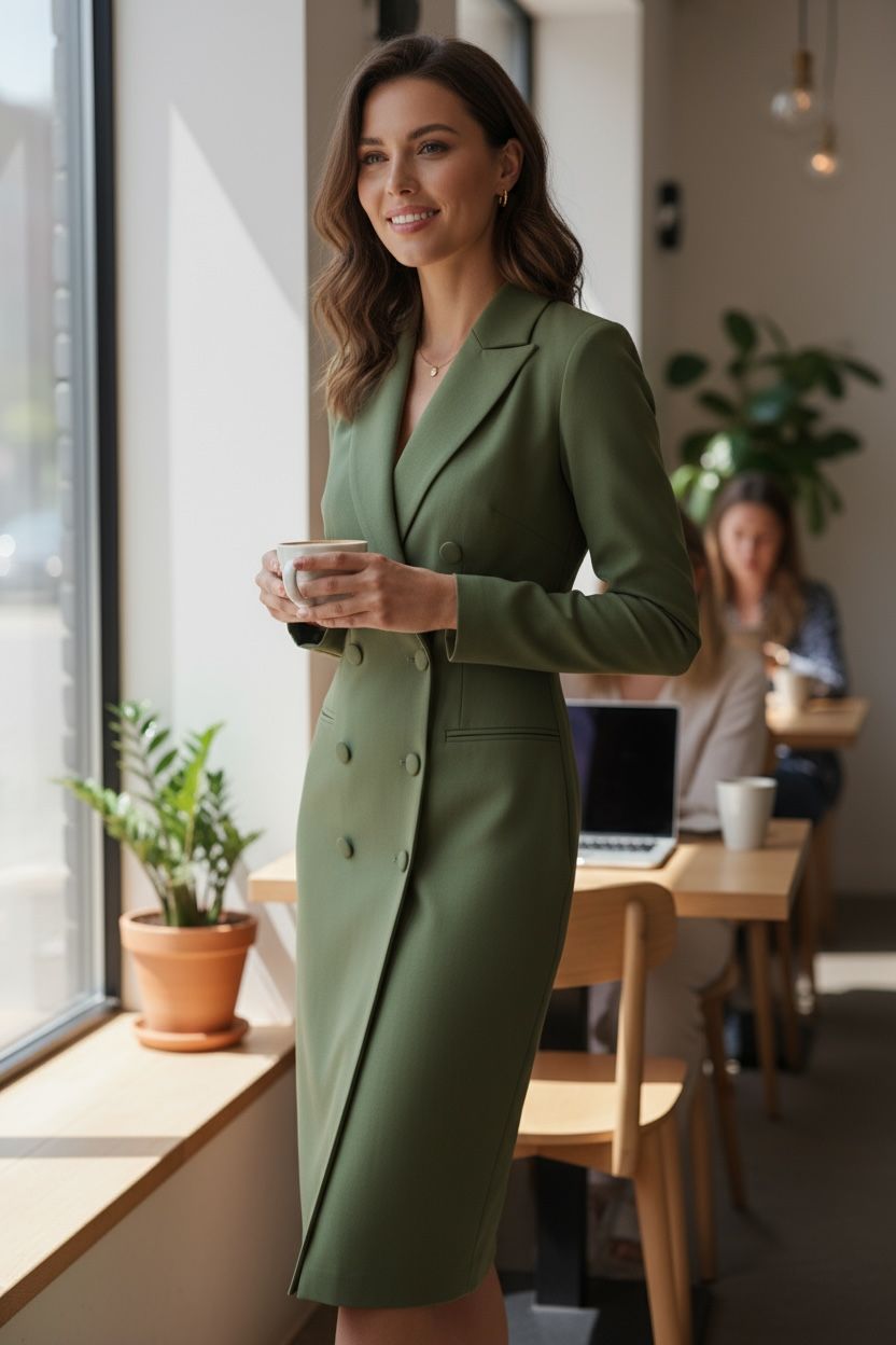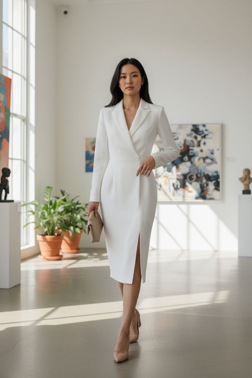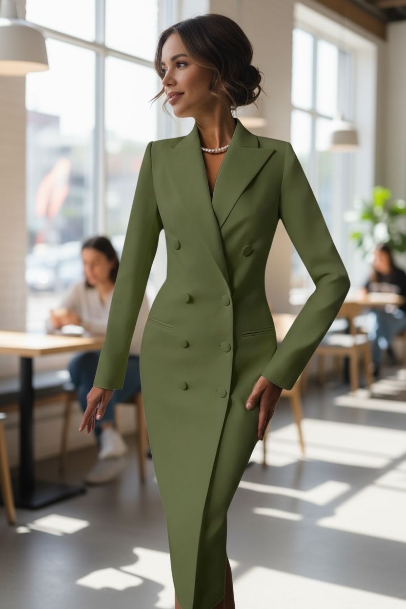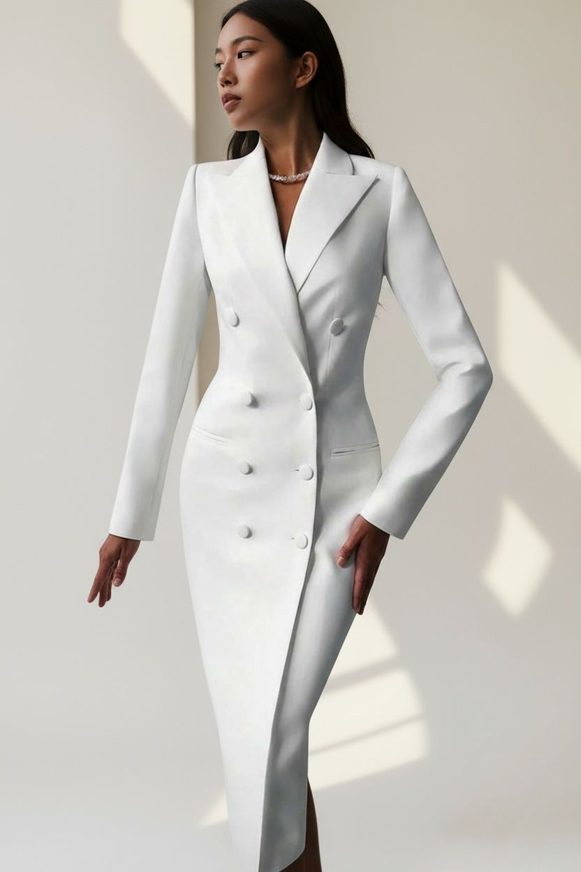Elevate your professional wardrobe with this timeless classic white business formal dress. Featuring a sophisticated double button front closure, this...
