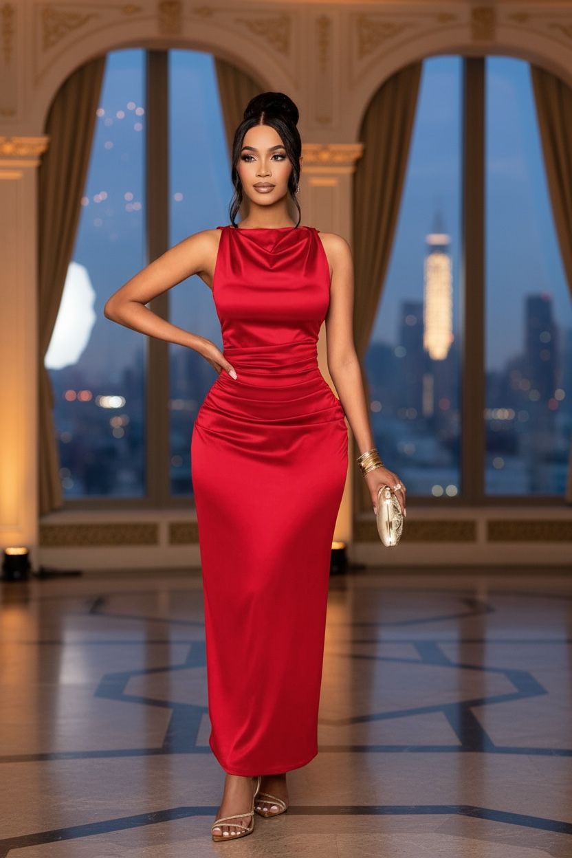 Effortlessly elegant, this satin dress combines luxurious fabric with practical wearability. The smooth, lustrous finish creates a refined silhouette that...