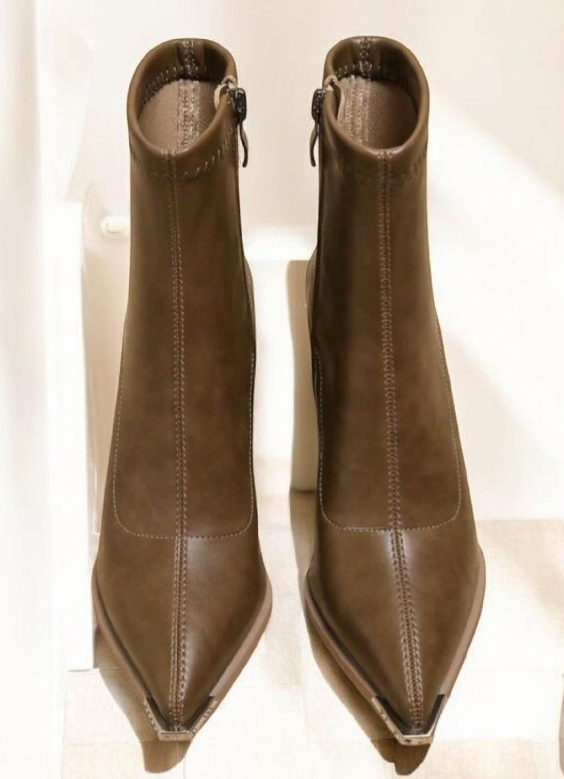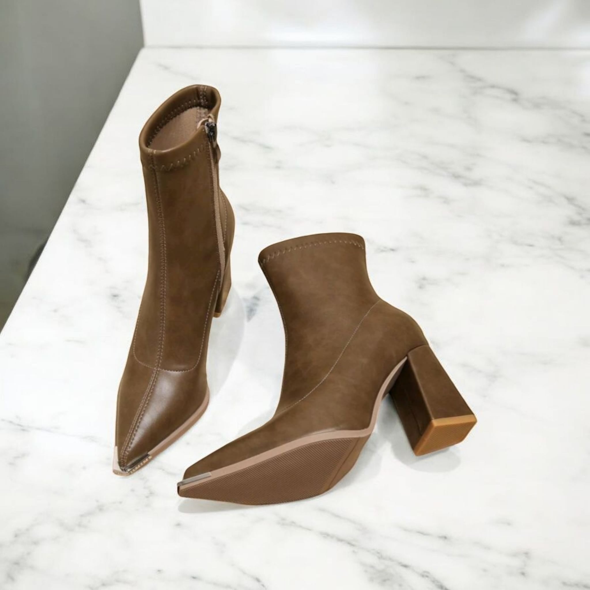 Step into sophistication with these Coffee Tone Square Heels Booties, designed for the discerning woman who values both style and...