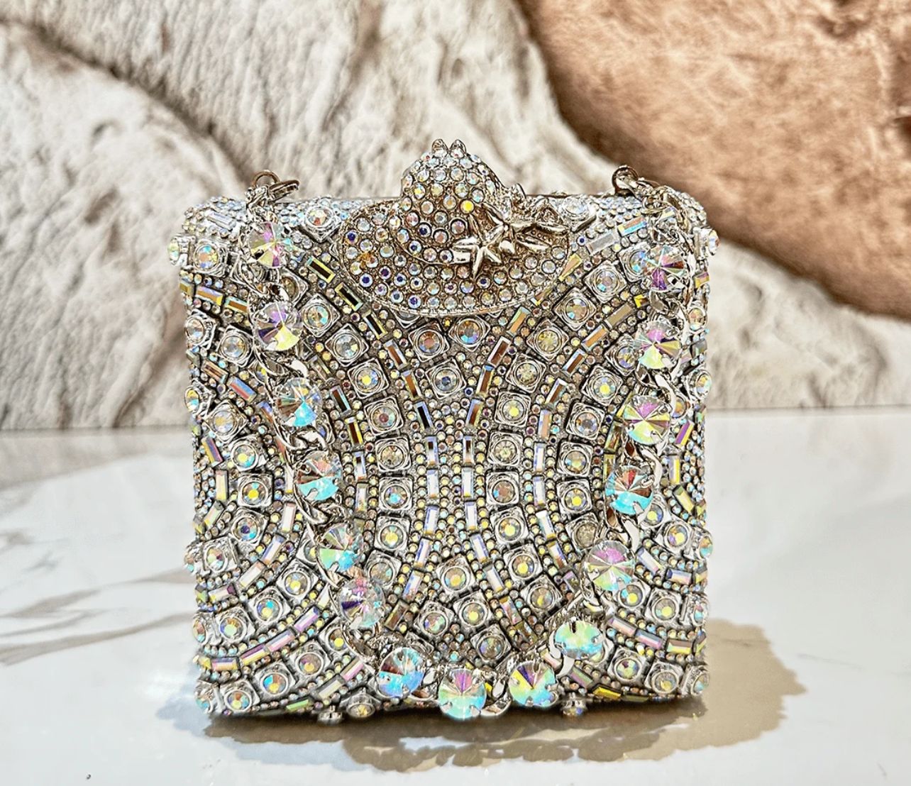 The crystal chandelier purse is perfect for special occasions.