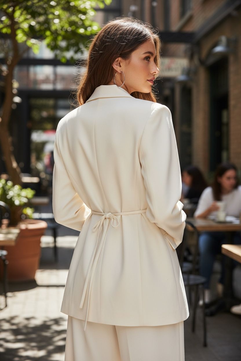 Sophisticated tailoring meets contemporary style with this deep-V cut blazer suit. The plunging neckline creates a striking silhouette while maintaining...