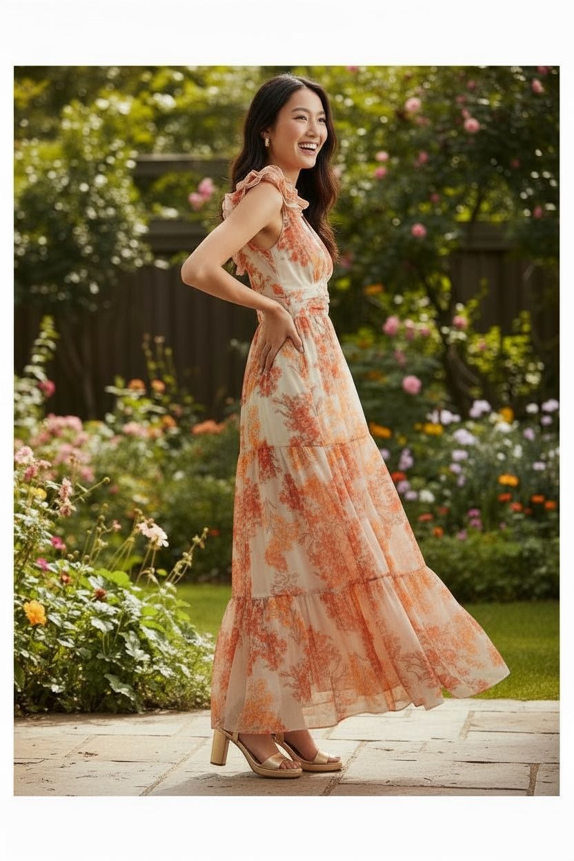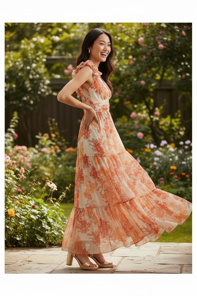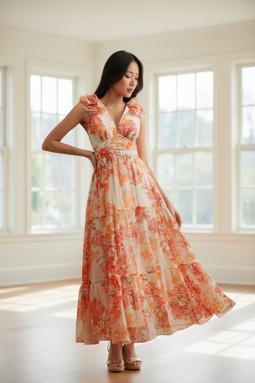 This refined floral maxi dress combines timeless design with contemporary sophistication. Crafted from quality fabric, it features an elegant botanical...