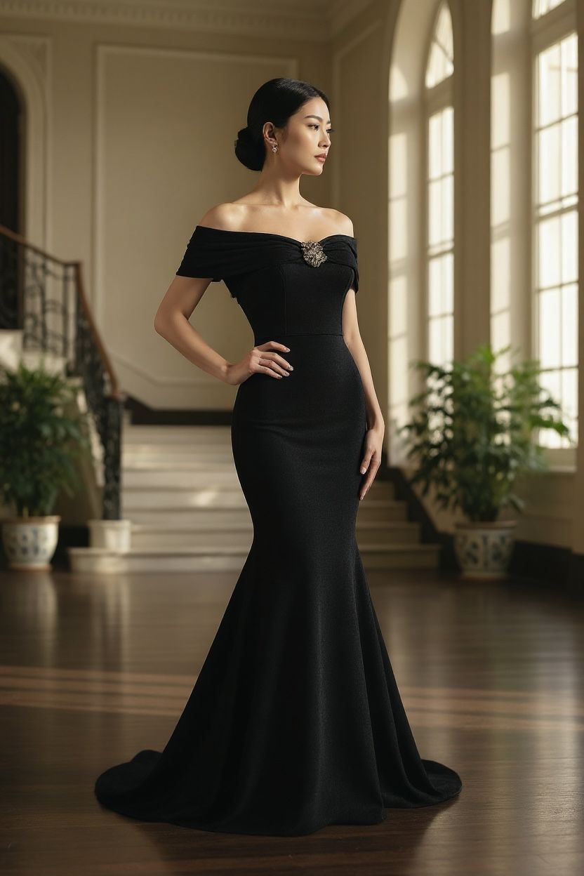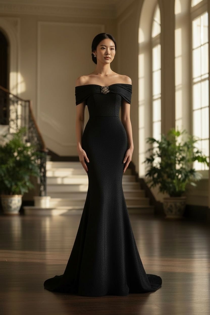 Elegant Mermaid Off-Shoulder Fitted Gown