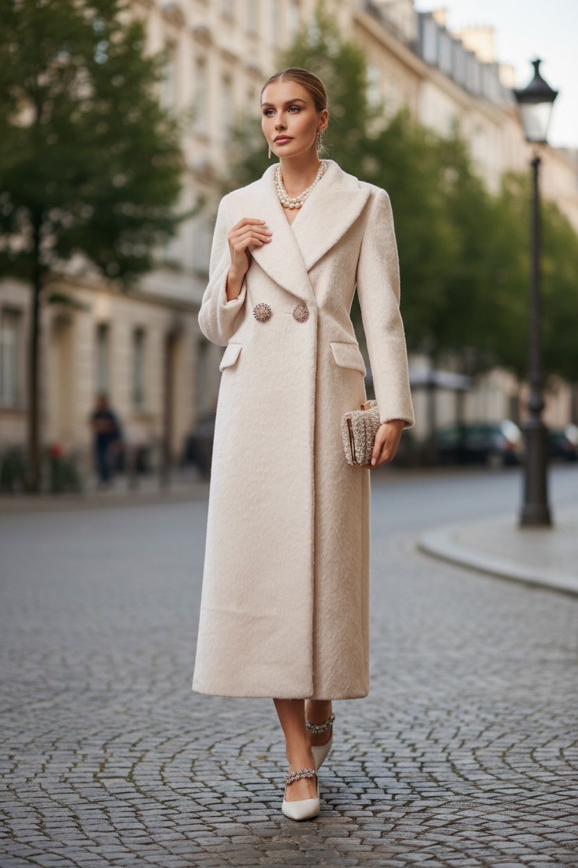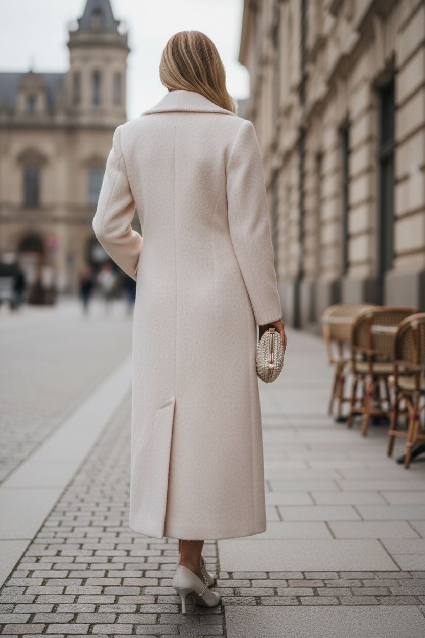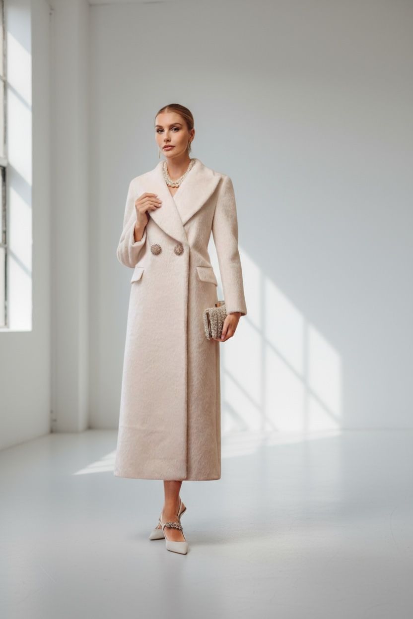 Crafted from premium wool blend fabric, this elegant winter coat delivers sophisticated warmth without compromise. The tailored silhouette flatters every...