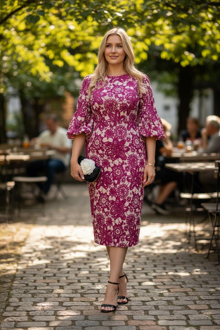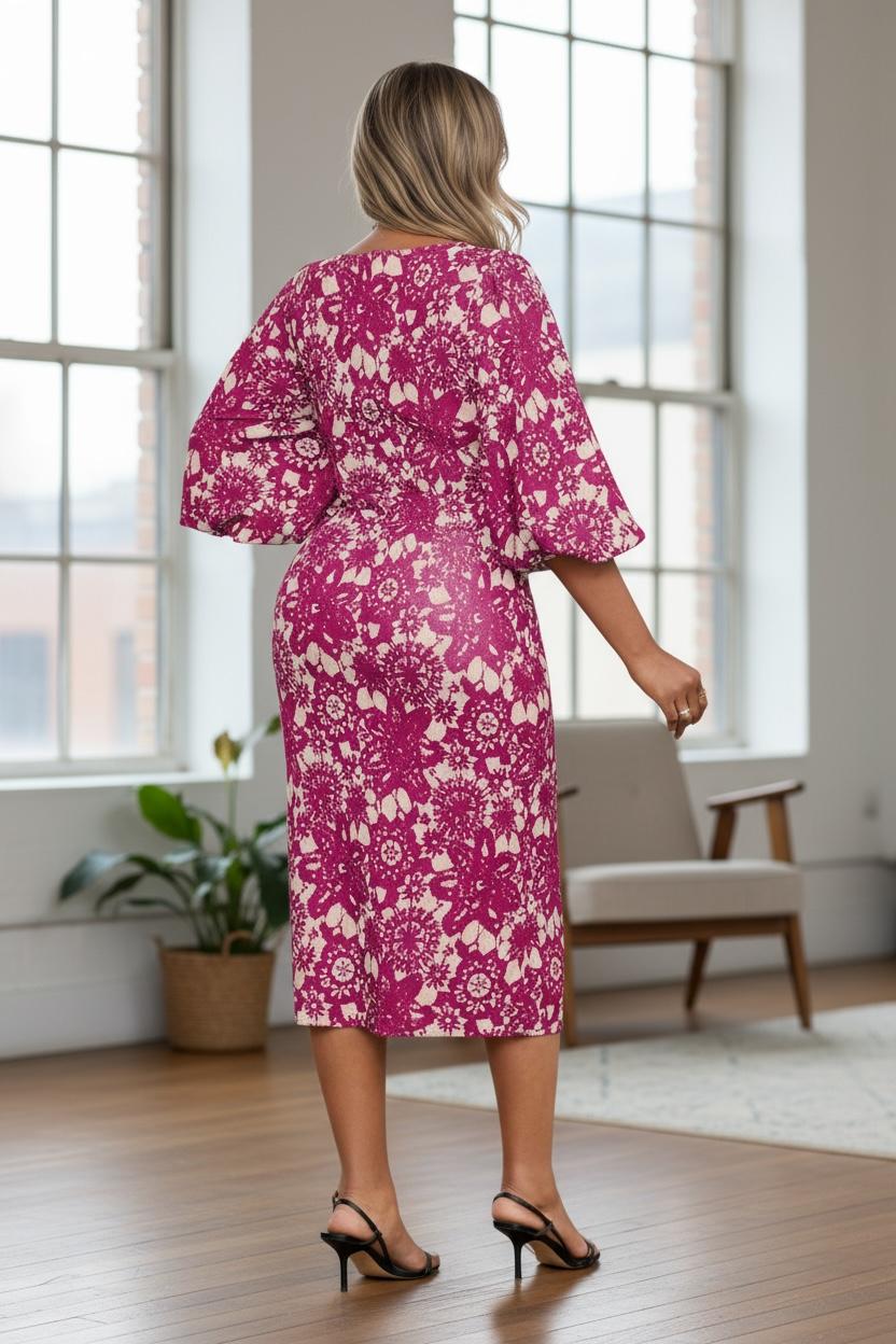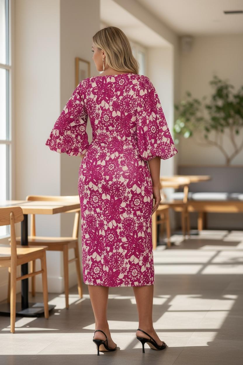The Elle elegant dress combines timeless sophistication with contemporary design details. Crafted for refined occasions, this piece features distinctive puffy elbow sleeves that add dimension and visual interest while maintaining an understated elegance. The structured silhouette flatters the figure, making it an ideal choice for cocktail events, dinner parties, or upscale gatherings. The voluminous sleeve detail draws attention to the arms while the fitted bodice creates a balanced, polished look. Perfect for those who appreciate fashion-forward styling without sacrificing classic appeal.