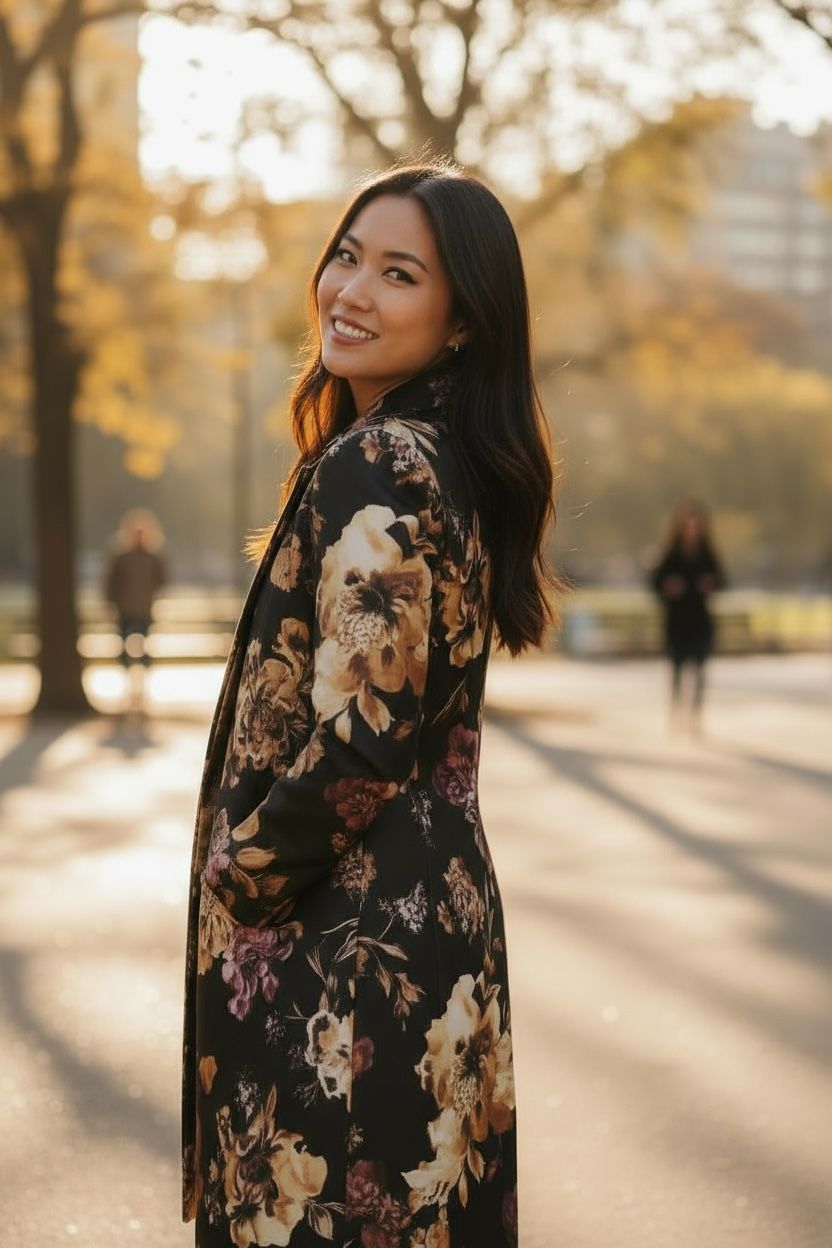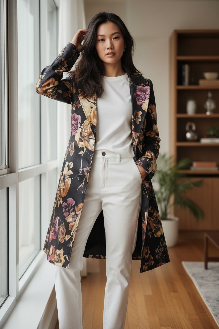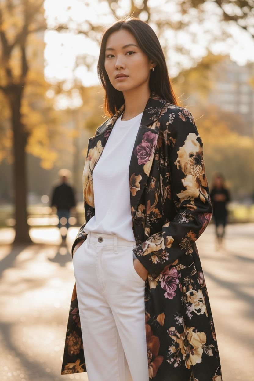 This floral trench blazer marries classic outerwear construction with botanical elegance for a distinctly refined silhouette. The trench-inspired tailoring delivers...