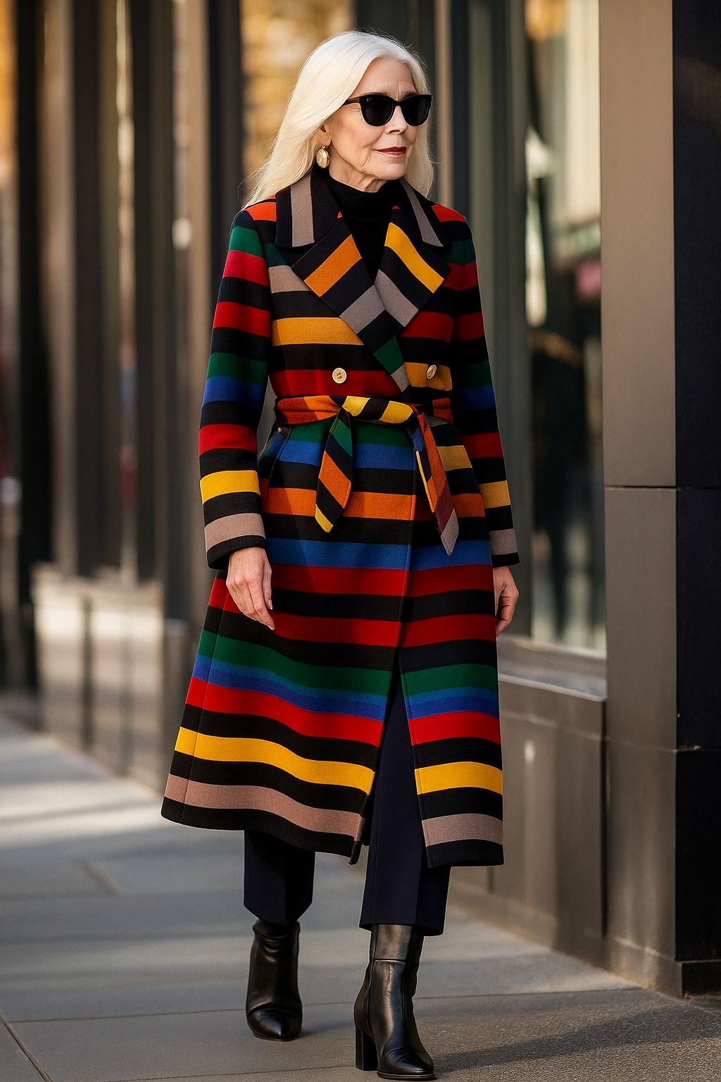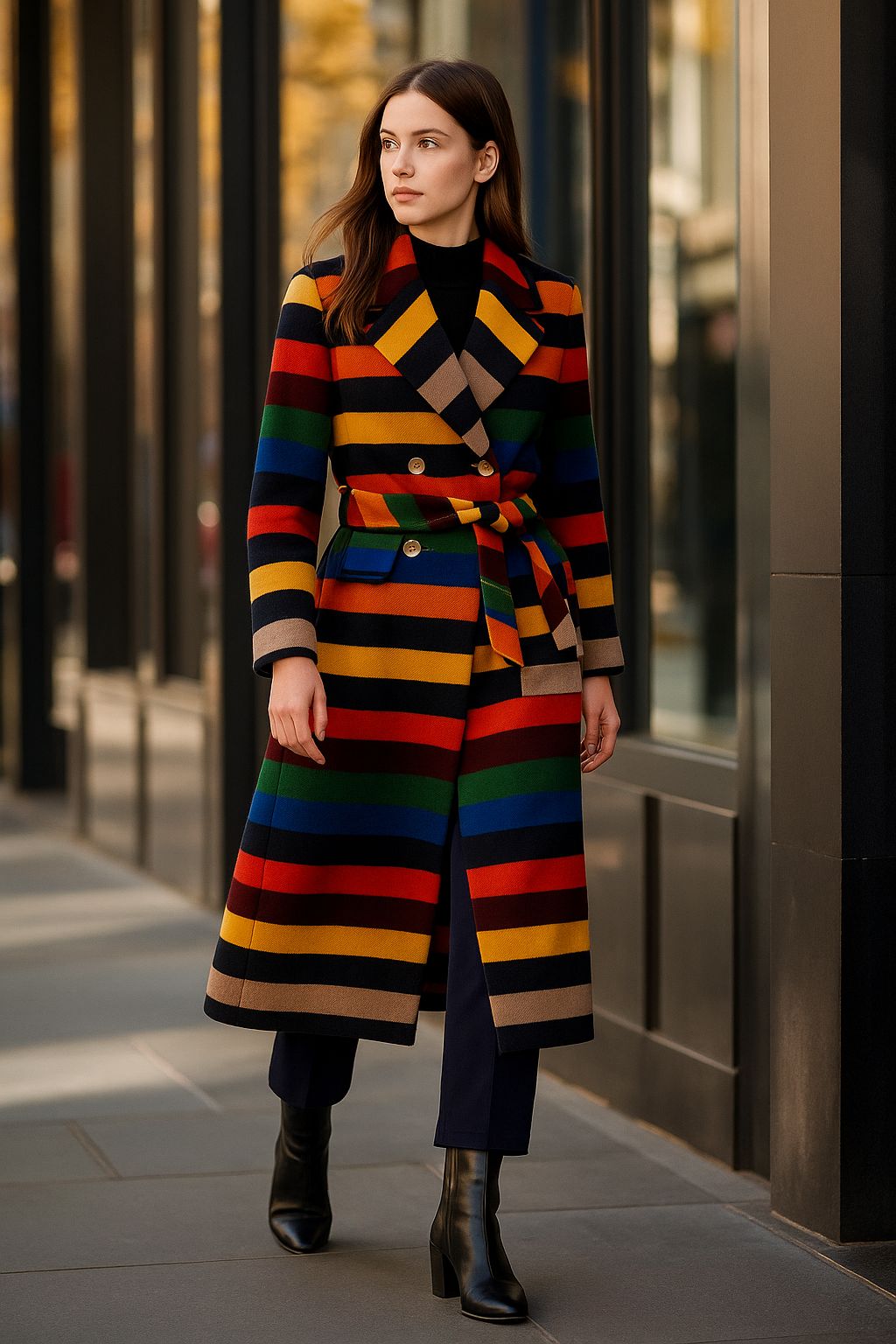 The stripe trench coat combines timeless tailoring with contemporary sophistication. Crafted from premium fabric, this piece features classic horizontal stripes...
