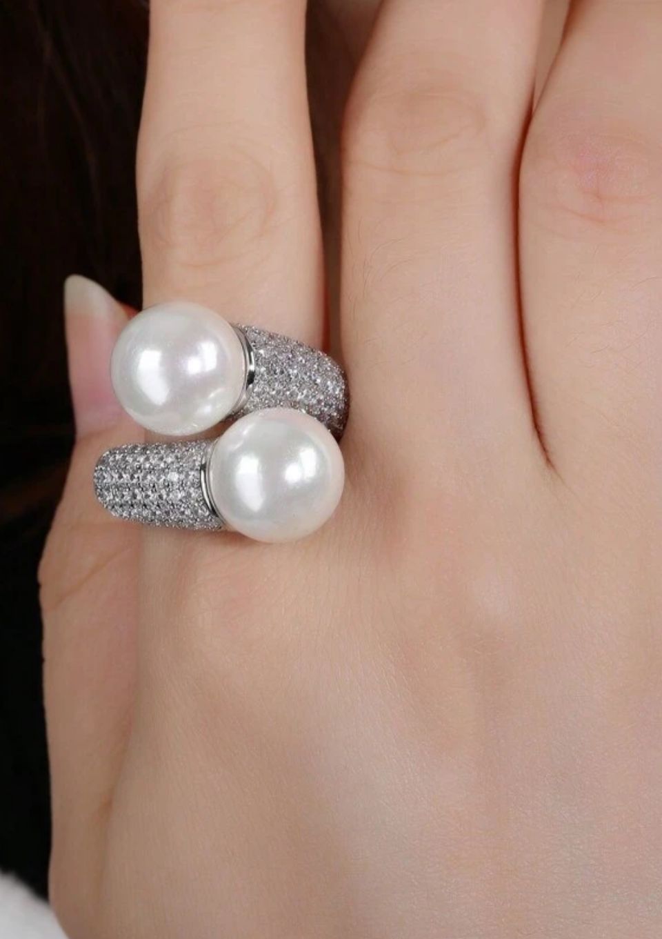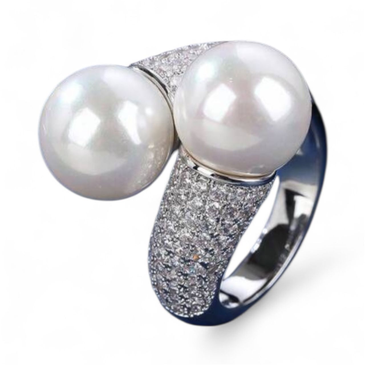 Perle Divine Twin pearls resting on a diamond-kissed band — graceful, feminine, and timeless.
