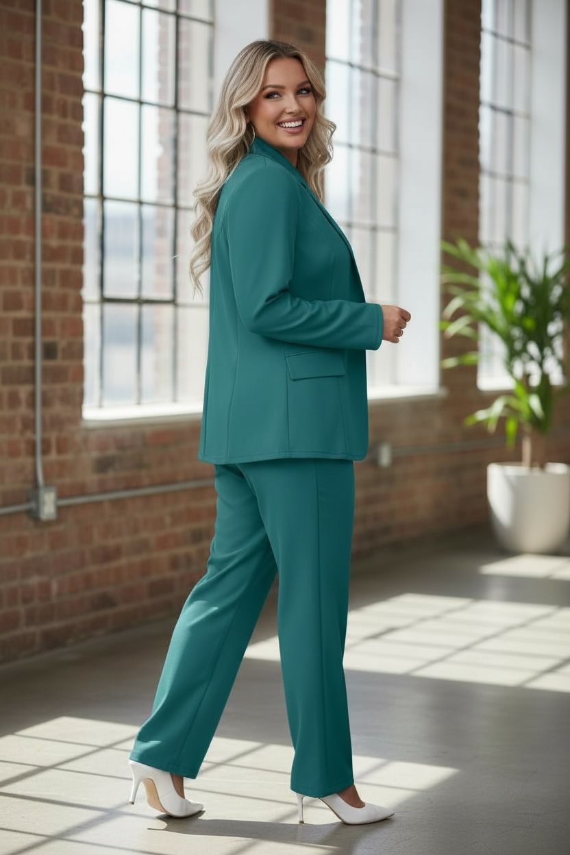 This aqua green suit jacket from Luxe Muet combines contemporary design with timeless sophistication. The striking jewel-tone hue provides a...