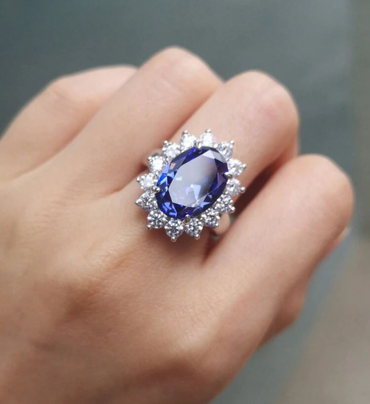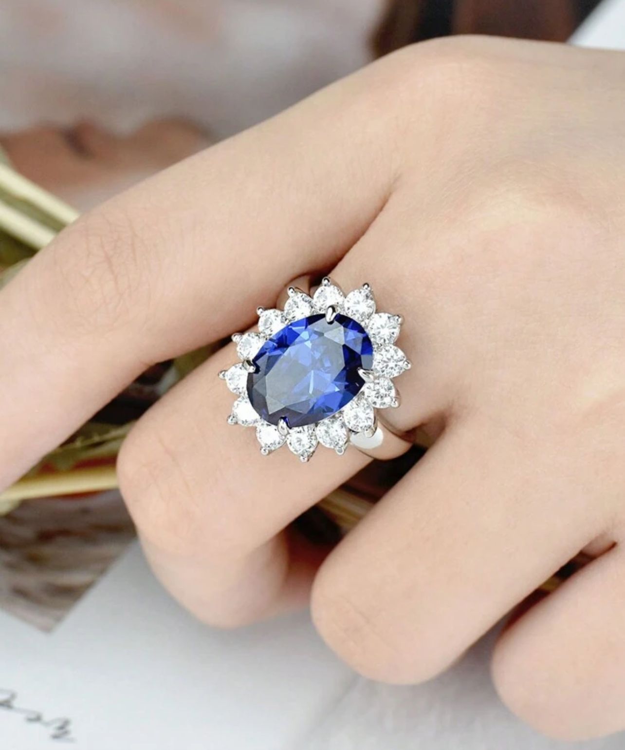 A commanding royal-blue gem set in shimmering silver this ring exudes confidence and grace fit for modern royalty.