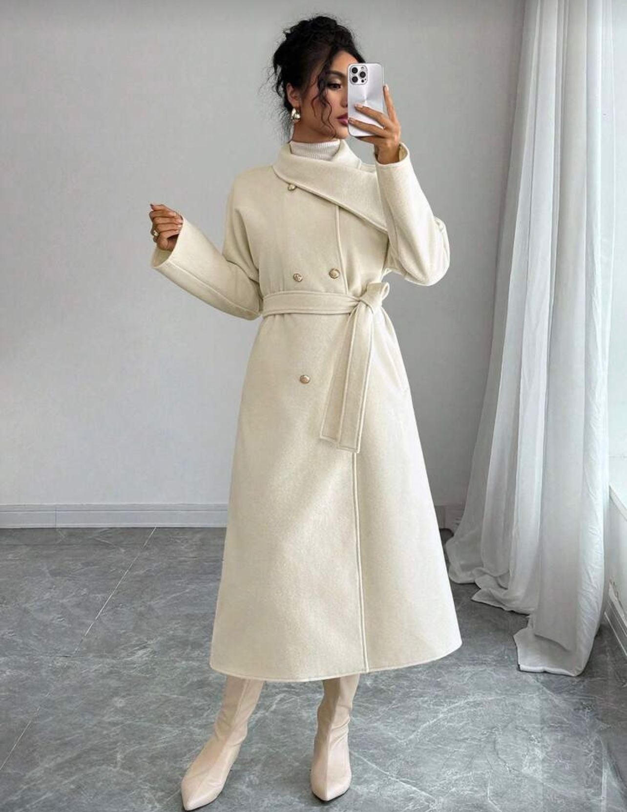Wrap yourself in regality with this long, double-breasted masterpiece crafted for timeless grace.